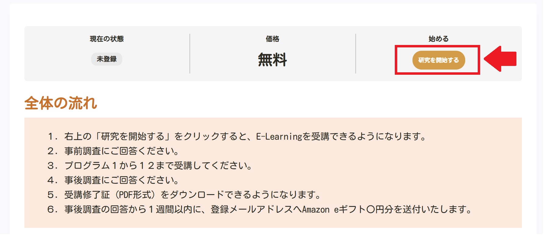 なお、この研究に参加いただいた方には、プログラムの受講修了証(PDF)とAmazon eギフト500円分を贈呈いたします。